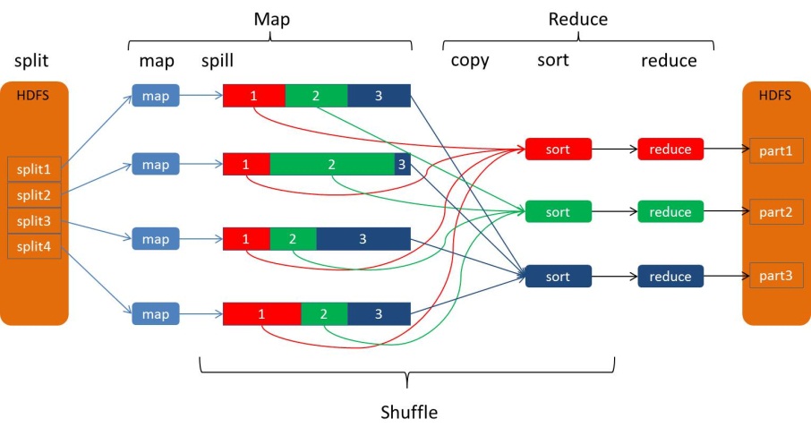 在将map的结果集传递给reduce之前对数据进行了分组(类似于对K2做了group by)