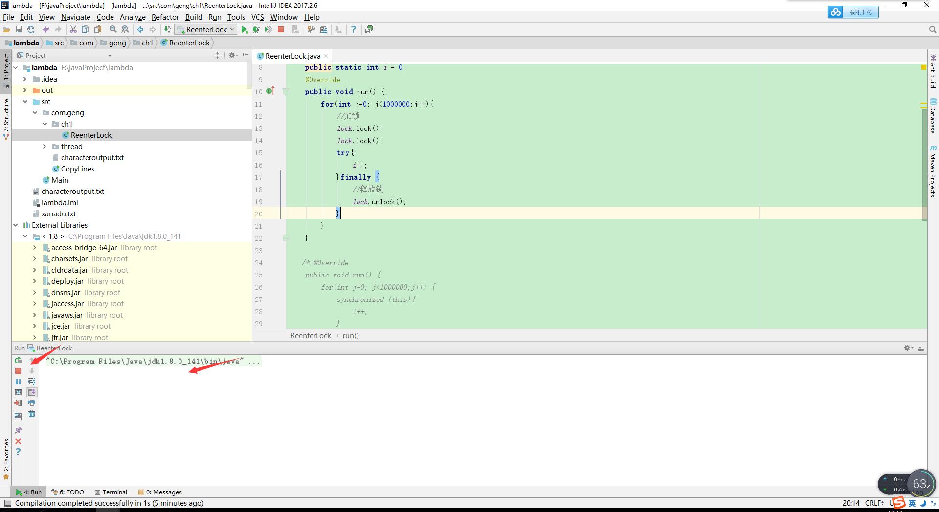 1 | public class ReenterLockInt implements Runnable { |