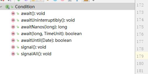 await()方法会使当前线程等待,同时释放当前锁,当其他线程使用signal()时或者signalAll()方法时,线程会重新或得锁并继续执行。或者当线程中断时,也能跳出等待,这和Object.wait()方法类似。